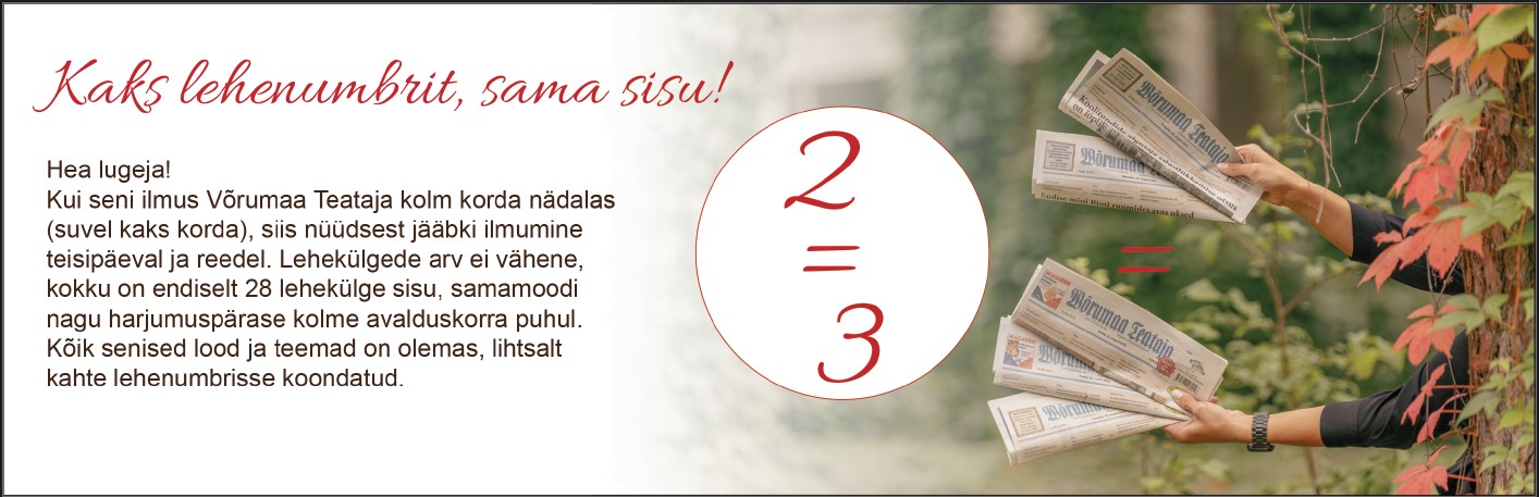annab Sulle kõigile Võrumaa Teataja artiklitele piiramatu lugemisõiguse. - Portaal digileht.vorumaateataja.ee
